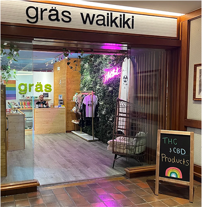 If you’re coming from Kalākaua Avenue, look for the green GRAS sign — our entrance is right beside it.